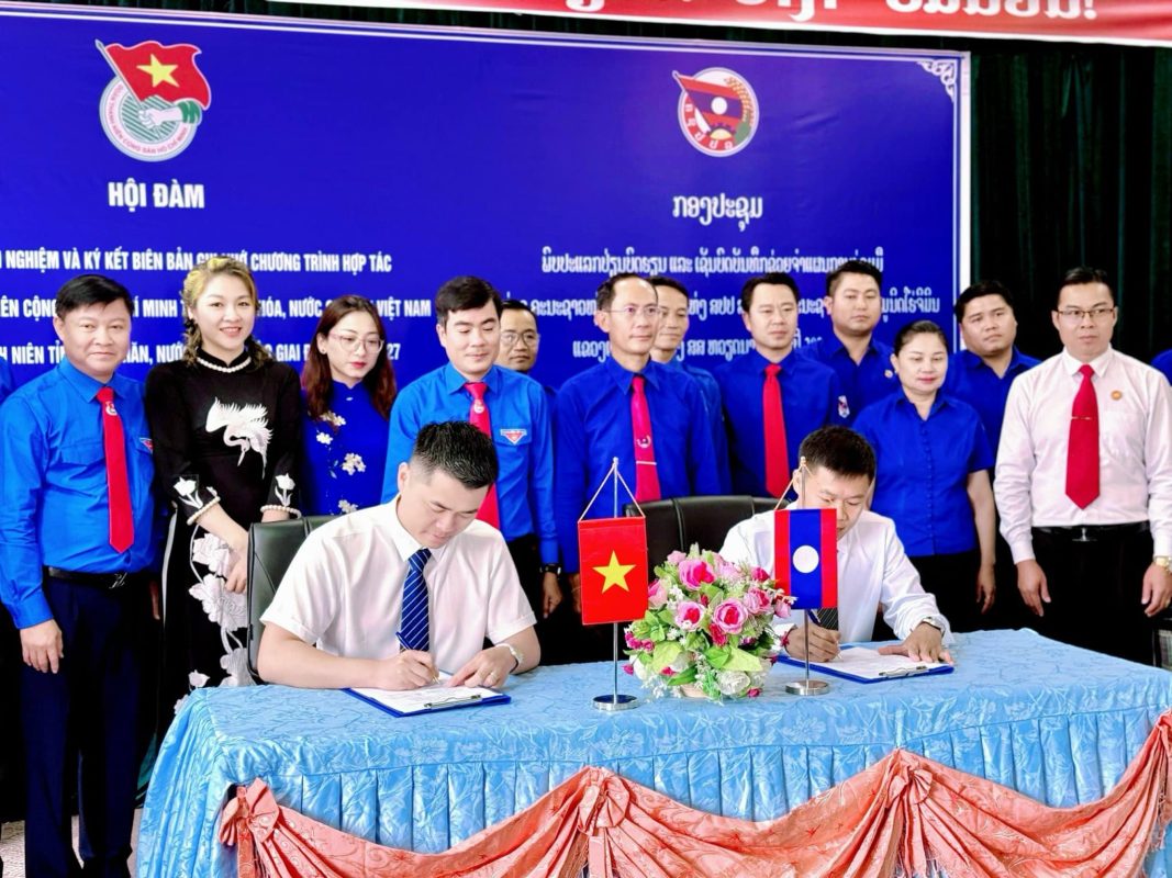 Trong khuôn khổ chuyến thăm, làm việc anh Bùi Tiến Thành, Phó Chủ tịch Hội Doanh nhân trẻ tỉnh Thanh Hoá đã đại diện Hội DNT tỉnh Thanh Hoá ký kết biên bản ghi nhớ giữa Hội Doanh nhân trẻ tỉnh Thanh Hoá và Hội Doanh nhân trẻ tỉnh Hủa Phăn.