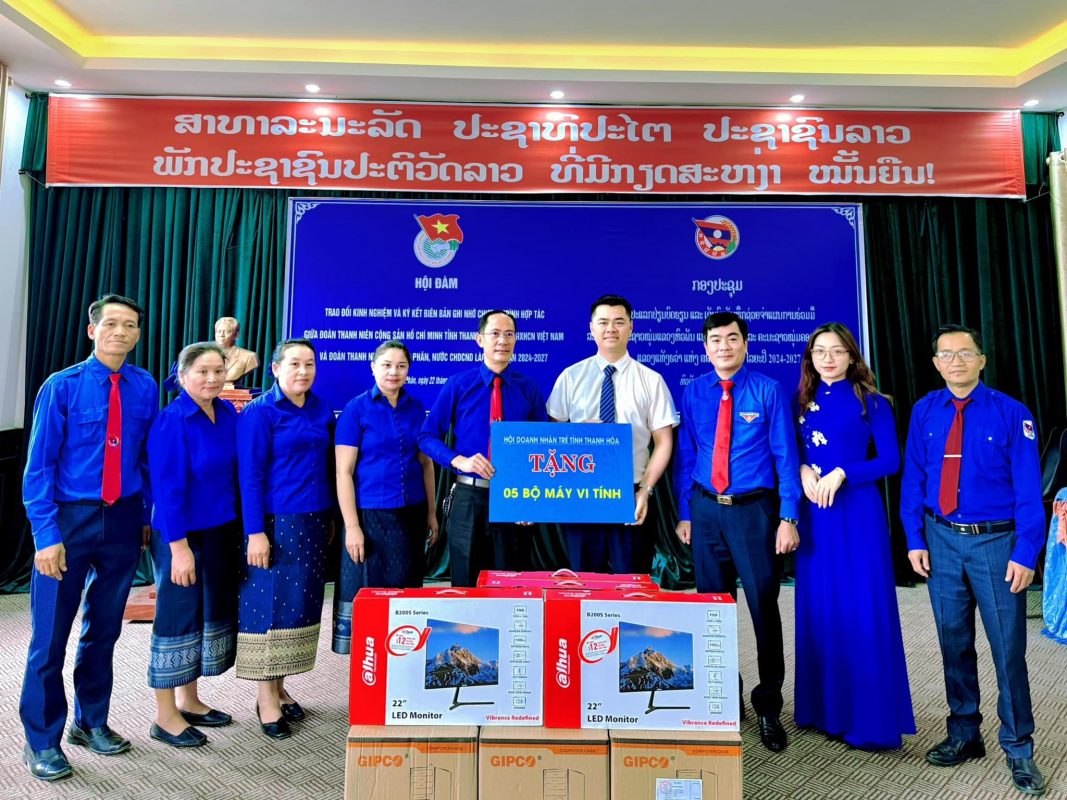 Nhân dịp này Hội Doanh nhân trẻ tỉnh Thanh Hoá đã trao tặng cho Đoàn thanh niên tỉnh Hủa Phăn 05 bộ máy vi tính với tổng trị giá 40 triệu đồng.