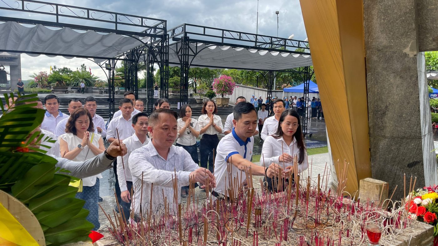 Trong không khí trang nghiêm, đoàn Doanh nhân trẻ Cụm Bắc Trung Bộ đã thỉnh 9 hồi chuông, kính cẩn dâng hoa, dâng hương, và dành phút mặc niệm tưởng nhớ các liệt sĩ đã hy sinh vì nền độc lập, tự do, thống nhất đất nước. Sau lễ dâng hương, các thành viên trong đoàn đã lặng lẽ thắp nhang tại từng phần mộ, tưởng nhớ các anh hùng liệt sĩ. Nhìn những hàng mộ trắng thẳng hàng nổi bật giữa nền trời xanh, ai nấy đều không giấu được sự xúc động. Mọi người đều nhẹ bước chân, giữ yên “giấc ngủ” của các liệt sĩ