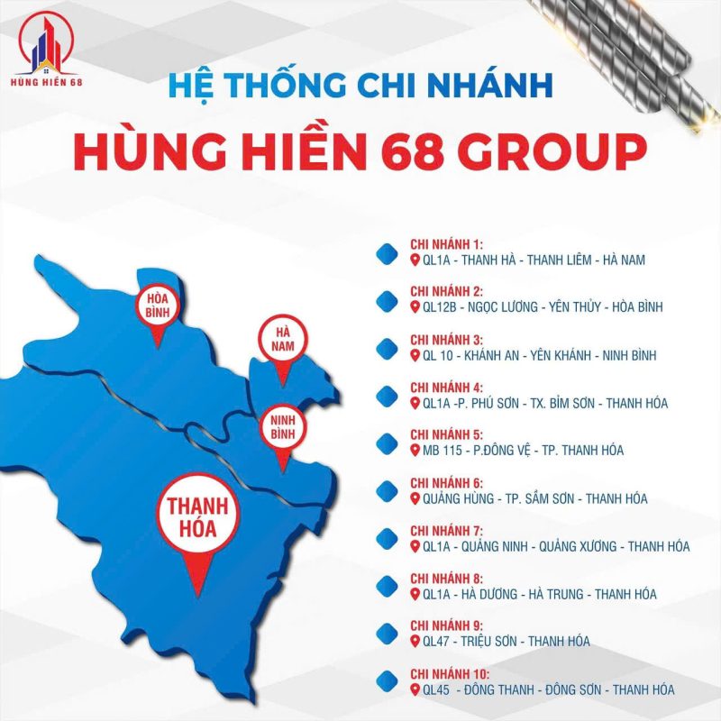 Công ty Hùng Hiền 68 dưới sự lãnh đạo của Giám đốc điều hành Nguyễn Thu Hiền là đơn vị tổng phân phối sắt thép, xi măng toàn Miền Bắc với những thương hiệu hàng đầu như Xi măng Long Sơn; Thành Thắng ; Thép Việt Đức; Việt Nhật KSVC…